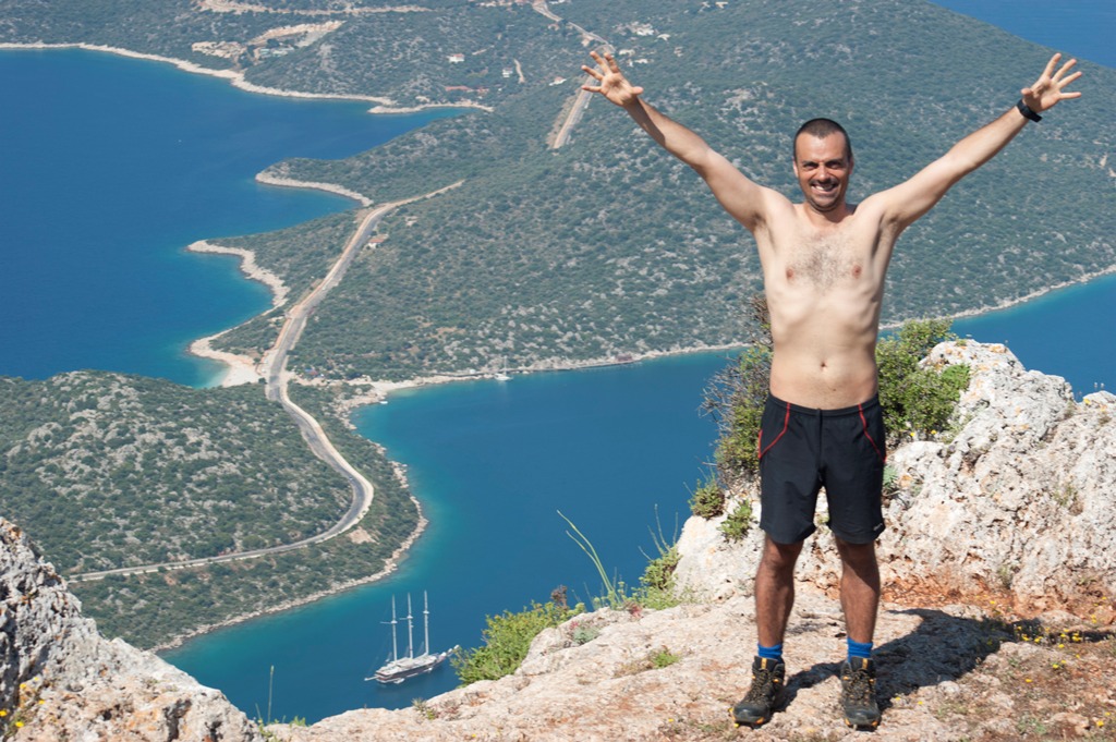 En sonunda ova bitiyor ve kayalıklara geldiğimizin farkındayız. Çalılık ve ağaçların arasından işaret ve yolu bulmaya çalışıyoruz. Yeniden birbirimizden ayrılıp yolu arıyoruz. GPS yardımıyla Altuğ Mehmet'e yolu bulduğunu haber veriyor ve çalıların arasından geçip tüm yolculuğun en keyifli manzarasını saat 11:30 gibi seyretmeye başlıyoruz. Kaş'ı 500 metreden seyretmenin keyfini süreceğiz bir süre.